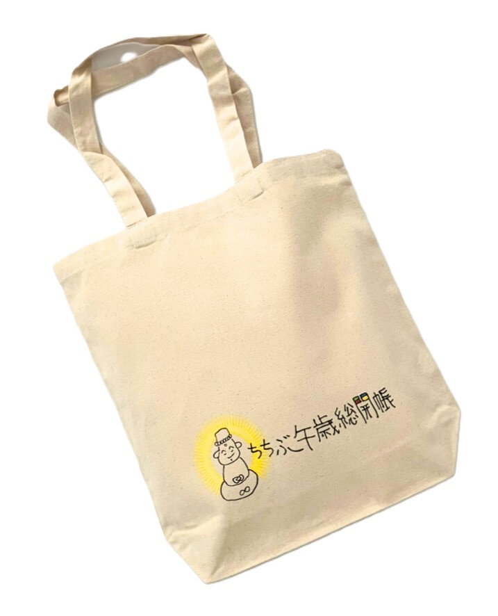 【抽選10名】 アールブリュット作品から誕生した午歳総開帳(うまどしそうかいちょう)公式ロゴがプリントされたオリジナルトートバックです。 A4サイズの書類が入る大きさです。